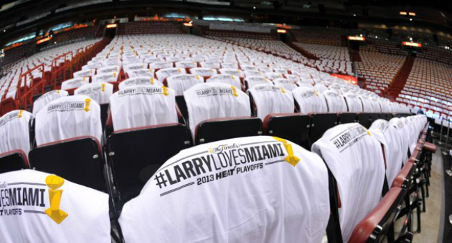 En este sentido, para el segundo encuentro que se disputó hoy, la franquicia llenó el American Airlines Arena con remeras que decían #LarryLovesMiami, en referencia al trofeo de la NBA que se llama Lawerence O’Brien Trohpy, el cual se entrega al ganador de cada temporada. Vale la pena destacar, que Larry O’Brien fue comisionado de la NBA desde 1975 a 1984.