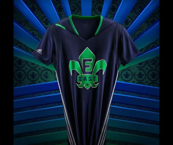 Los logos de ambas conferencias están en el centro de la camiseta, que veremos estrenarse el 16 de febrero en Nueva Orleans.