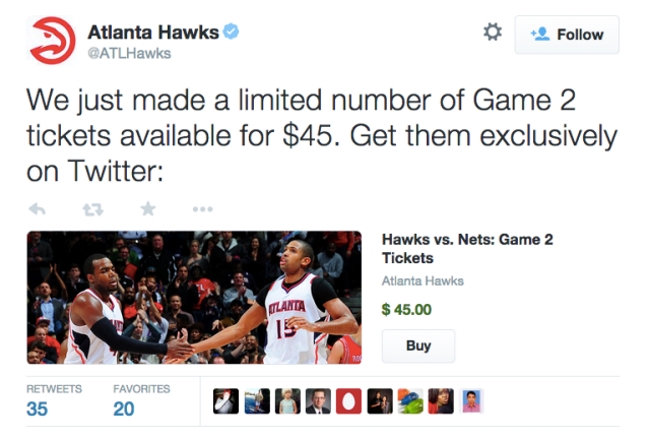Directamente desde Twitter, y con sólo hacer click en un botón, los fanáticos de los Hawks pueden adquirir tickets para los partidos de su equipo en los play offs.