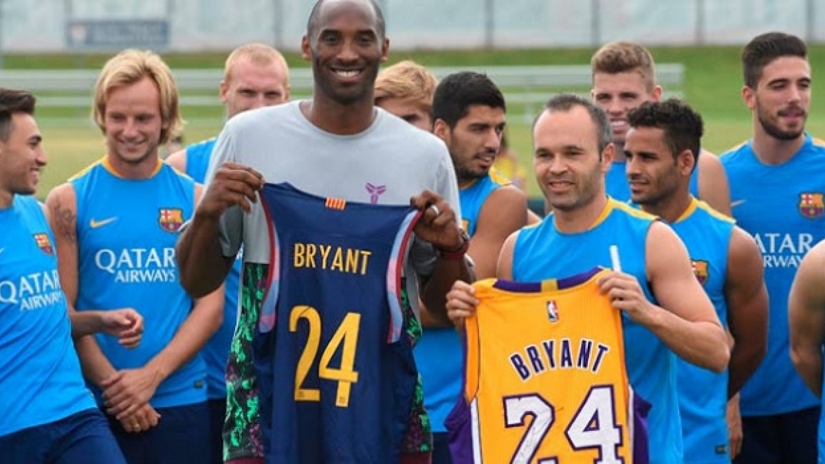 Mientras el Barcelona realiza su pretemporada en Estados Unidos, Kobe Bryant fue uno de los que visitaron al equipo Culé. Piqué e Iniesta fueron quienes más interactuaron con el jugador de Los Angeles Lakers, quienes luego intercambiaron camisetas, entregándole la prenda del equipo oficial de básquetbol del Barcelona.