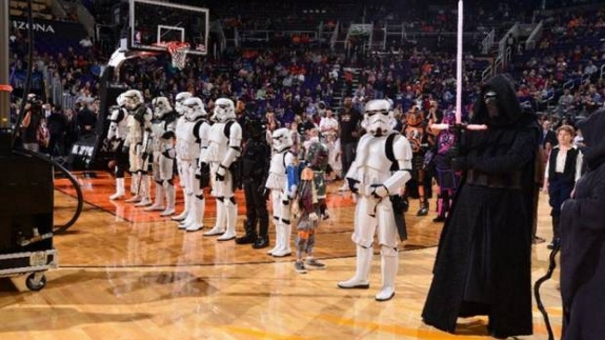 El fanatismo por Star Wars traspasa fronteras e incluso invade deportes. En la NBA, los Phoenix Suns fueron noticia por una noche dedicada íntegramente a la saga que se prepara para el lanzamiento de Star Wars VVII: The Force Awakens.