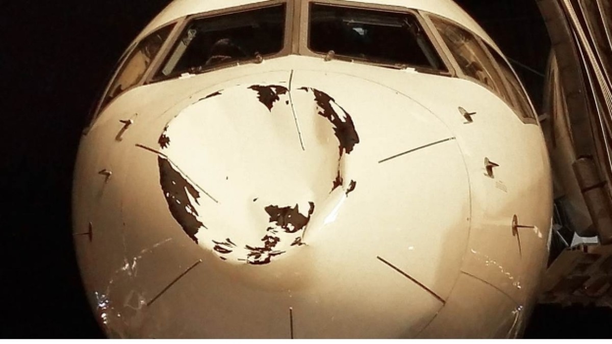 Minutos después de aterrizar en el Aeropuerto internacional de Chicago, el avión que transportaba al plantel de los Oklahoma City Thunder desde Minessota este fin de semana fue recibido con asombro tras notificar un hundimiento prominente en la trompa de la aeronave.