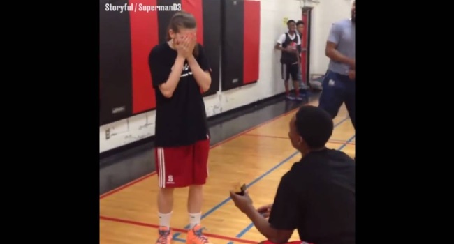 El deporte universitario en los Estados Unidos presenta niveles de profesionalidad casi tan altos como algunos de los procesos profesionales en países del resto del continente. En este contexto cabe entender que un basquetbolista amateur logre causar un impacto inimaginable a través de una jugada de entrenamiento que resultó ser una ingeniosa propuesta de matrimonio.