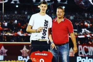 El jugador de la NBA, fanático de Newells, que recibió una camiseta y el carnet de socio dentro de la cancha