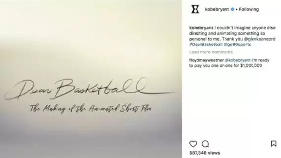 Como parte de la estratégica campaña de difusión en la que se encuentra trabajando Kobe Bryant con su documental “Dear Basketball”, su cuenta personal de Instagram fue una de las últimas herramientas utilizadas para compartir su contenido y además llevarse una curiosa sorpresa entre los comentarios.