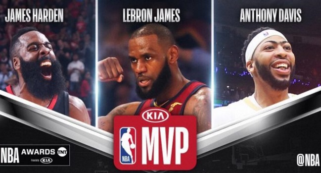 James Harden de Houston Rockets, LeBron James de los Cleveland Cavaliers y Anthony Davis de los New Orleans Pelicans son los tres finalistas para ganar el premio al mejor jugador de la temporada.