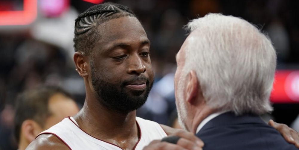 Allí, Wade fue homenajeado con un emotivo video que se proyectó en todas las pantallas, además de recibir una caja empacada como un regalo de parte del director técnico rival, Greg Popovich.