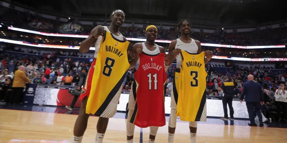 Se trata de los hermanos Holiday, donde Justin y Aaron juegan para los Indiana Pacers, y Jrue lo hace en New Orleans Pelicans. Nunca antes había pasado algo así en la liga estadounidense. El hecho sucedió en el estadio Smoothie King Center de los New Orleans.