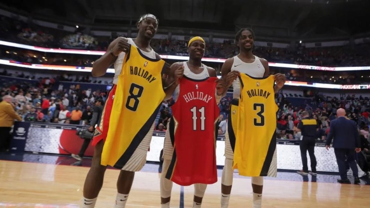 Se trata de los hermanos Holiday, donde Justin y Aaron juegan para los Indiana Pacers, y Jrue lo hace en New Orleans Pelicans. Nunca antes había pasado algo así en la liga estadounidense. El hecho sucedió en el estadio Smoothie King Center de los New Orleans.