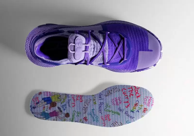 De esta forma, la estrella de la franquicia californiana salió al campo de juego con las "Curry 6 United We Win' de color morado y con una serie de dibujos (obra de Riley Morrison), como el de dos niñas jugando al baloncesto.