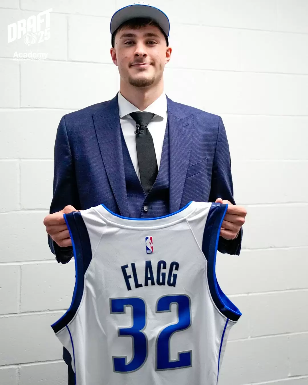El joven, primera selección general, fue elegido por los Dallas Mavericks, quienes tenían derecho al primer pick de la noche. Vestirá la camiseta número 32 del equipo. Fue el atleta más joven en ser seleccionado desde LeBron James. Con 2,06 metros de altura, jugó para el equipo de baloncesto universitario de la Universidad de Duke, los Duke Blue Devils, donde alcanzó aún más prominencia. A pesar de haber debutado en la liga profesional apenas ayer, la expectativa en torno a Flagg ha sido alta durante algún tiempo, tanto por parte de los fanáticos y veteranos de la liga como de las marcas.