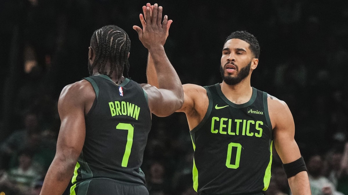 Justo detrás están Giannis Antetokounmpo, de los Milwaukee Bucks, y Jaylen Brown, también de los Celtics.