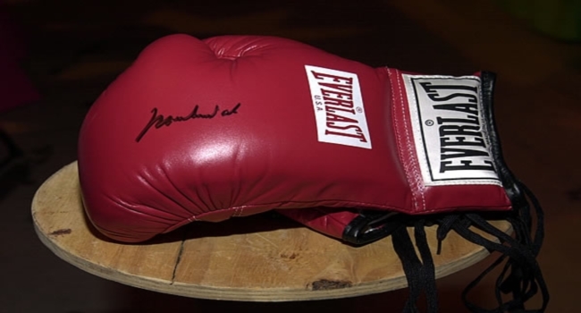 836 mil 500 dólares decidió pagar un comprador anónimo por unos guantes utilizados por Muhammad Ali en su primer título mundial de pesos pesados, el 25 de febrero de 1964 ante Sonny Liston. La subasta se dio en el marco de la Sports Platinum Night Auction.