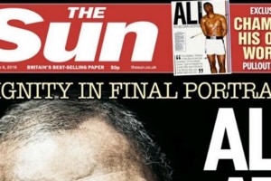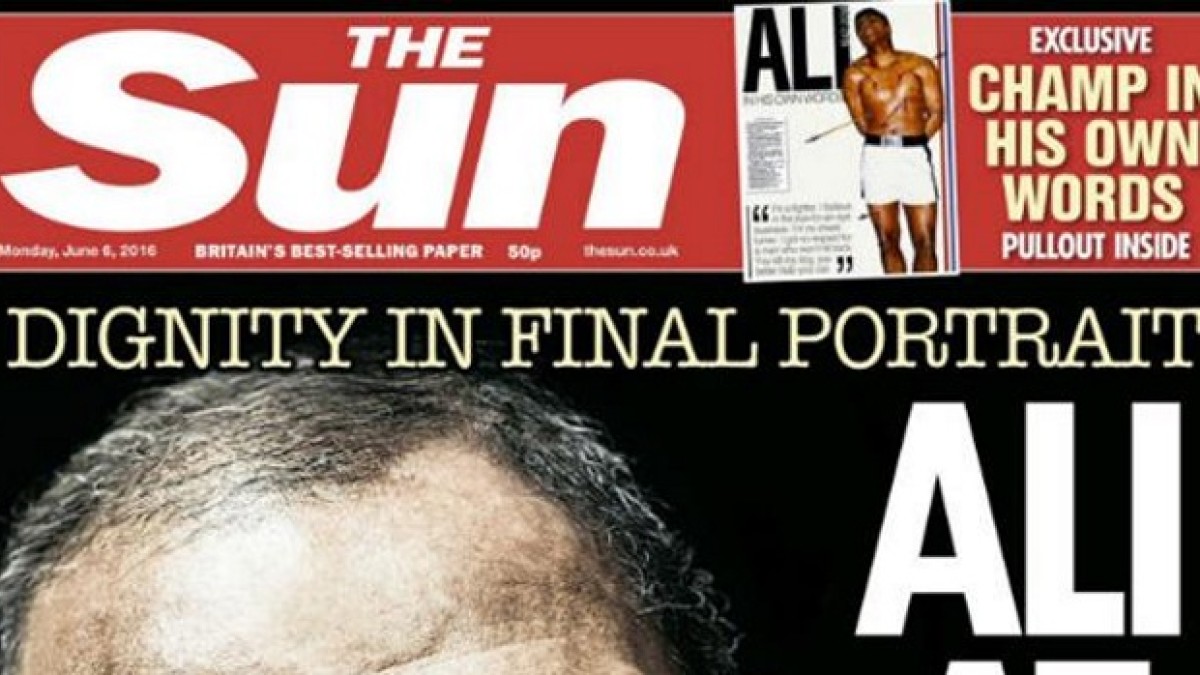 El diario británico The Sun fue noticia mundial por su foto de tapa elegida para la edición del lunes 6 de junio. Se trata de la última tomada a Muhammad Ali, hace dos meses, cuando el astro del boxeo mundial se encontraba ya muy demacrado por la enfermedad de Parkinson que sufría desde décadas atrás.