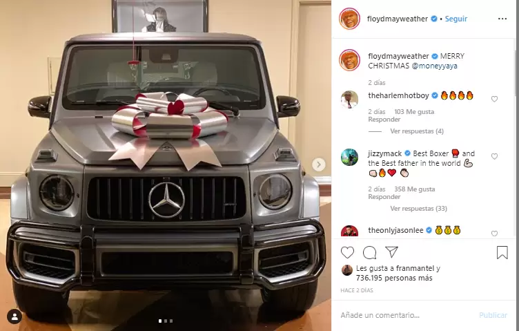 No es la primera vez que Floyd hace un regalo de este estilo. Cuando su hijo Zion cumplió 18 años, recibió un Mercedes C-Class Coupe de 50 mil dólares. Además, reconocido fanático de autos, sumó a su colección el nuevo Bentley Continental GT Mulliner 2020 que cuesta más de 230 mil dólares.