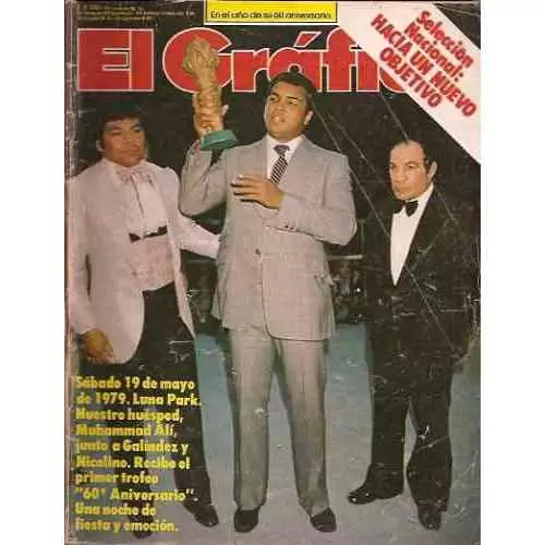 Esa no fue la única visita de Ali a la Argentina. El 19 de mayo de 1979, regresó y esta vez su presencia fue en el Luna Park, un escenario marcado por el boxeo argentino en esas épocas. Allí presenció el combate entre Juan Domingo Malvárez y Hipólito Núñez por el título Argentino y Sudamericano pluma. Pero, lo más destacado de su visita que incluso quedó plasmado en la tapa de El Gráfico, fue la foto que se sacó con la copa ganada por la Selección Argentina en el Mundial 1978.