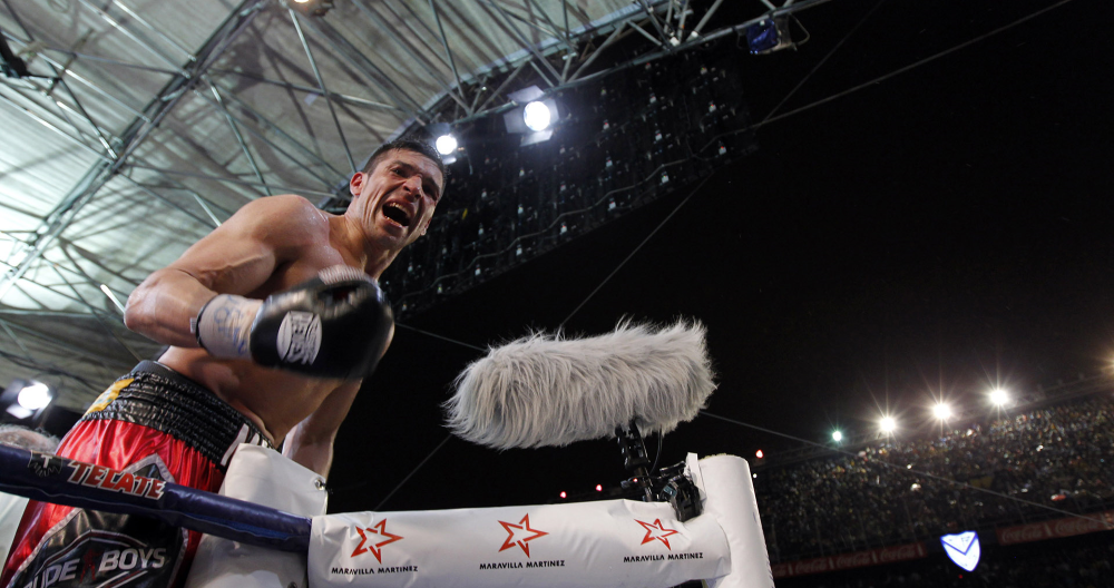 Sergio Martínez regresó a la actividad contra José Miguel Fandiño en el estadio de fútbol El Malecón, cancha donde el club Deportivo Torrelavega de España hace local.