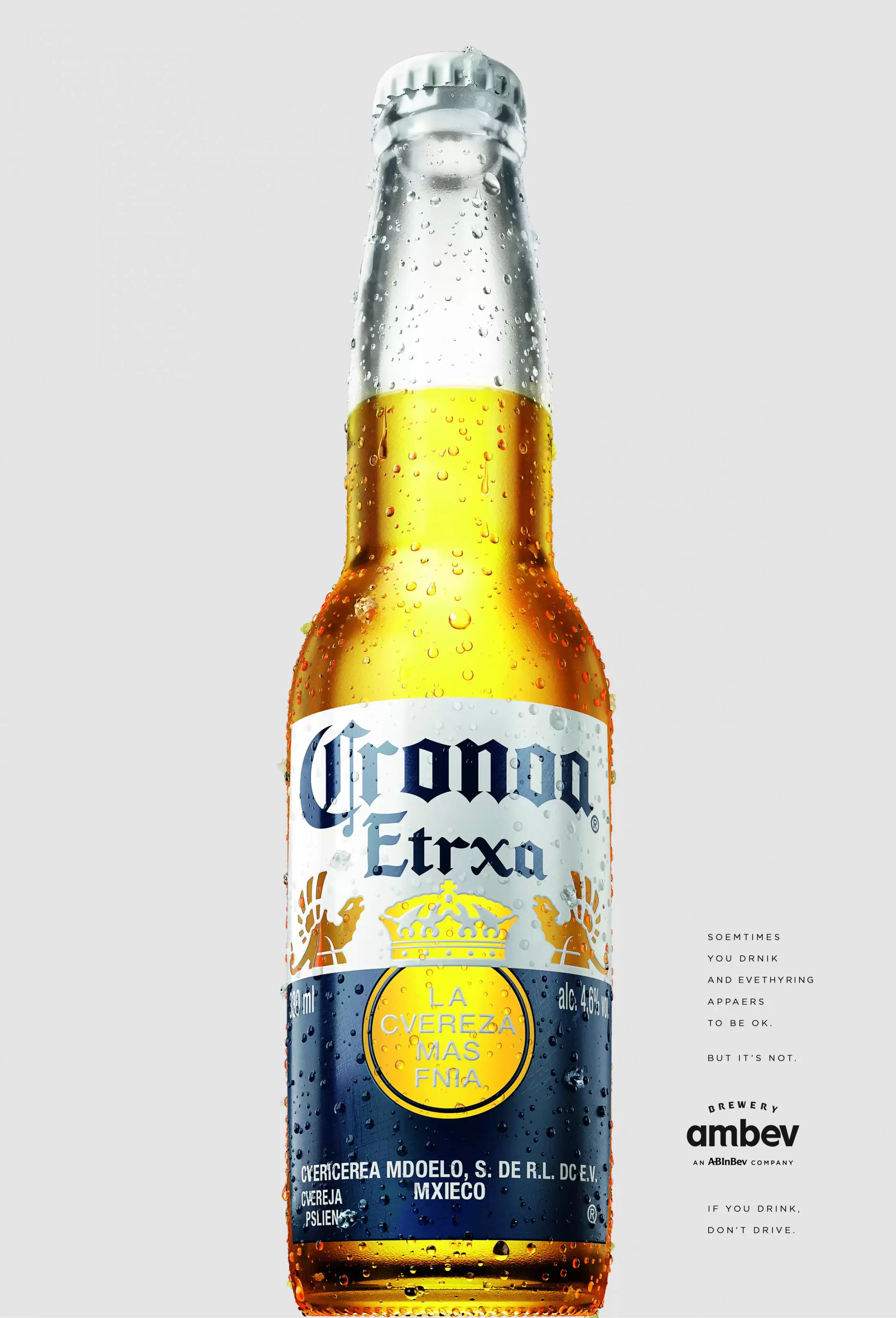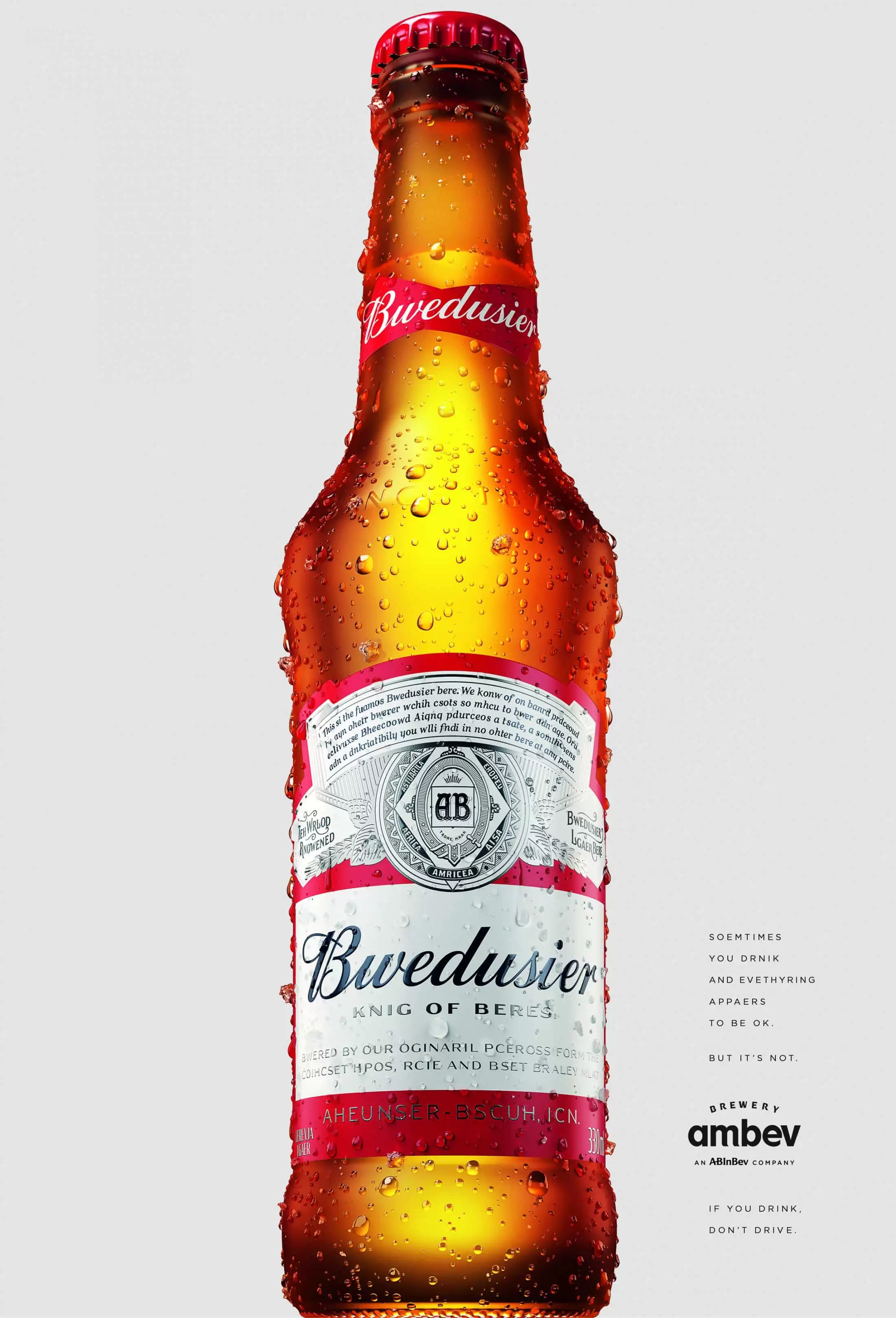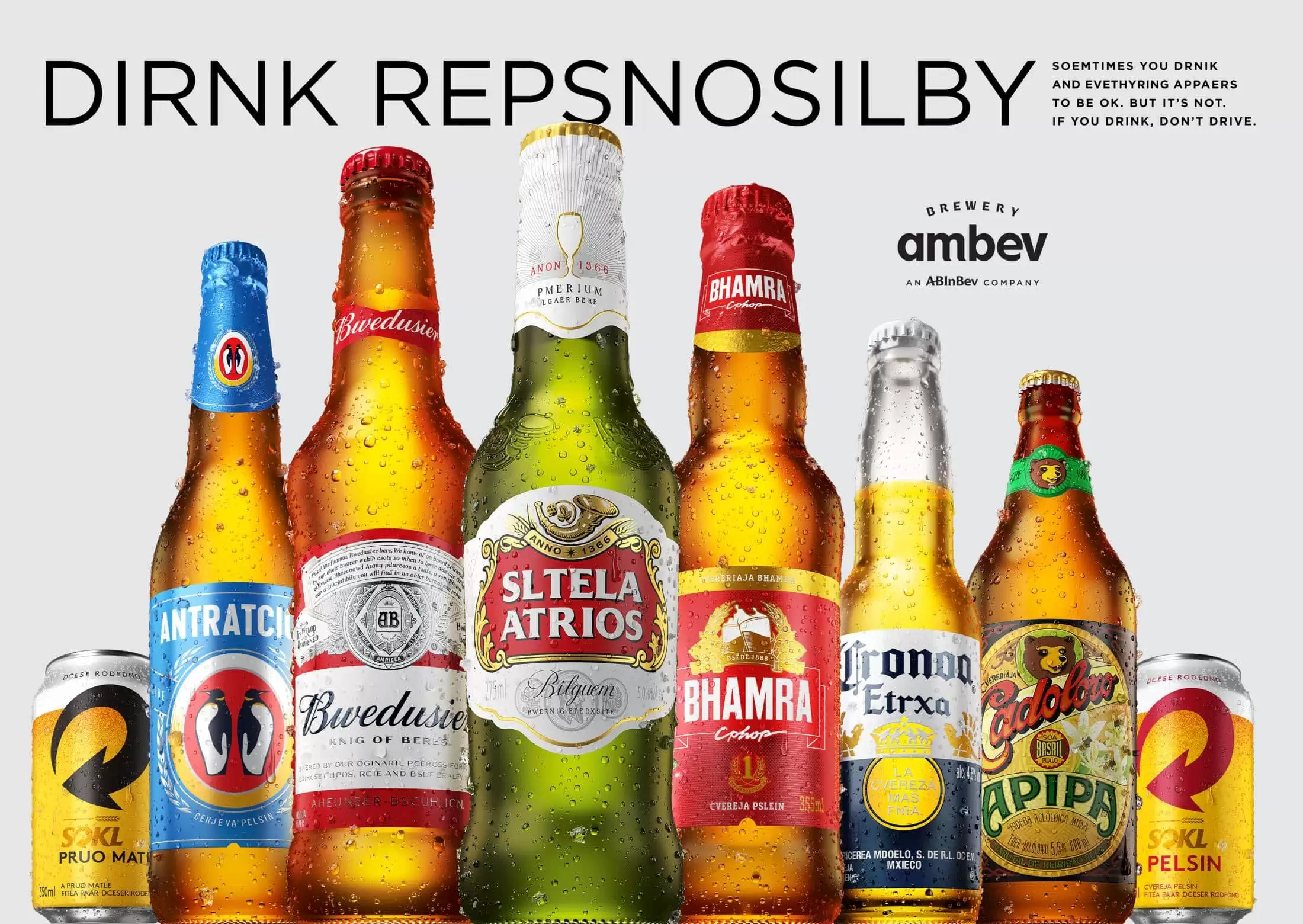 La empresa de cerveza brasilera Ambev lanzó una campaña para la concientización del consumo de alcohol, alterando el orden de las letras de cada envase.
