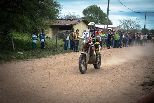 La prueba comenzó este domingo con Chavo como uno de sus principales atractivos. Y él cumplió con las expectativas, siendo el más veloz en los tres tramos que se corrieron, liderando así la clasificación de motos al final de la primera etapa. Salvatierra hizo un tiempo de 2 horas, 13 minutos y 31 segundos en los 230,69 kilómetros que se cronometraron ayer entre Cotoca, Quimome, San José de Chiquitos, Taperas e Ipiá.