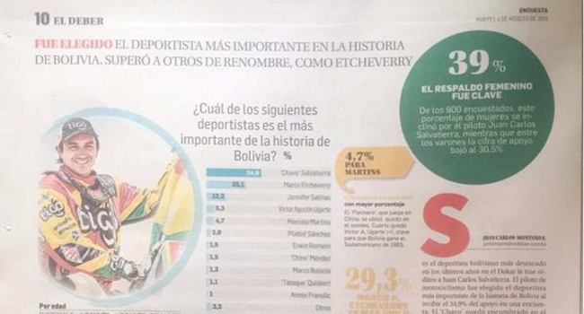 La encuesta se realizó en los días previos al 6 de agosto, cuando se recuerda la fundación de Bolivia. Ante la pregunta de ¿quién es el deportista más importante de la historia del país?, los resultados fueron contundentes.
