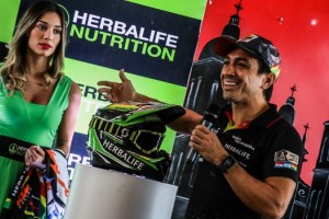 El piloto también presentó su nueva indumentaria deportiva, la cual usará por primera vez durante su competencia en Argentina, luciendo la marca Herbalife.