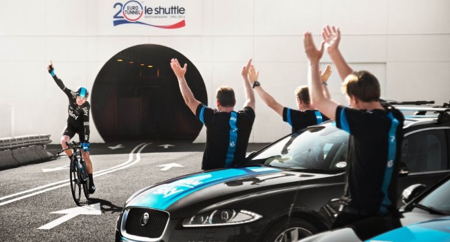 Mientras el Tour de France 2014 está en plena competencia, el equipo Sky encontró una gran manera de celebrar los 20 años del Eurotúnel que une Inglaterra y Francia bajo el Canal de la Mancha.