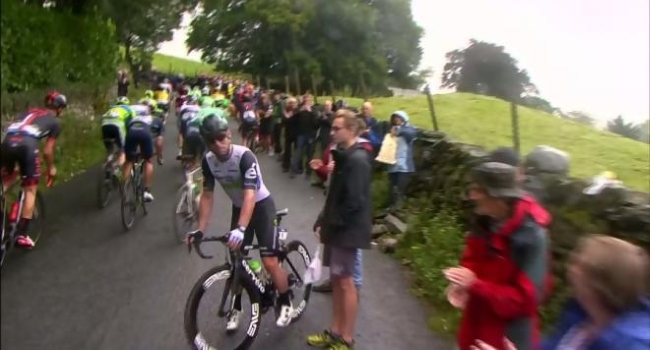 .@MarkCavendish taking a moment to have a word with a spectator... pic.twitter.com/ll83wFYig0