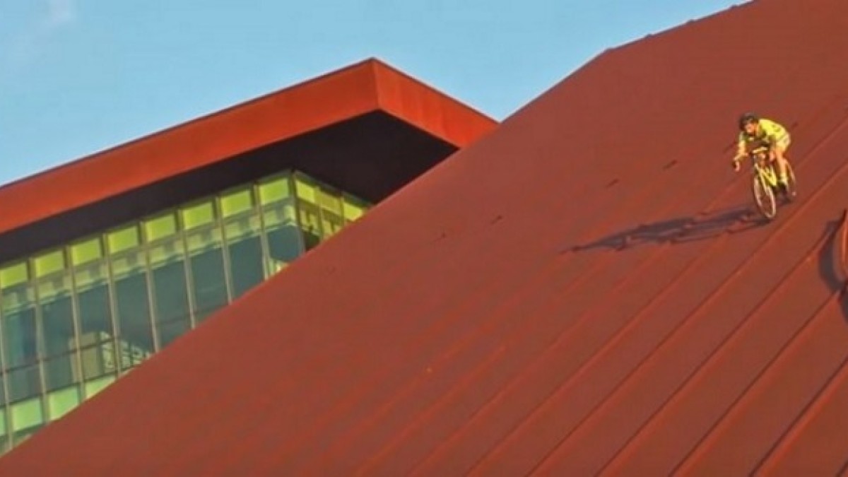 El italiano Brumotti sorprendió pedaleando en el techo de un edificio durante el Tour de San Luis