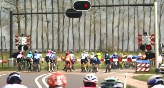 Días atrás en el Gran Premio de Escalada de Scheldeprijs en Bélgica una curiosa actitud llamó la atención de los seguidores de la competencia, pero también de las autoridades mismas. 35 ciclistas decidieron cruzar una barrera cuando estaba se encontraba baja para que pasara un tren de alta velocidad. Al ver esta acción los protagonistas de esta curiosa decisión fueron sancionados por los árbitros de la competencia.