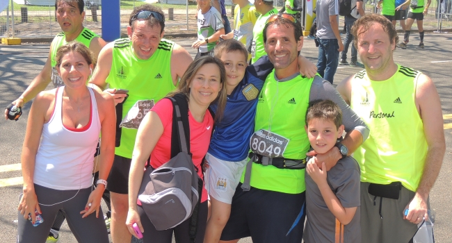 Lo más increíble es que corrí, con esta, 4 Maratones de 42k, más allá de que es mi trabajo, esta vez la sorpresa fue para mí. 400mts antes estaban mi dos hijos Valentín, Luciano y mi mujer, era la primera vez y entré corriendo con ELLOS DE LA MANO Y MI ALUMNOS CON SU FAMILIA, ¡¡ÚNICO EN LA VIDA!!