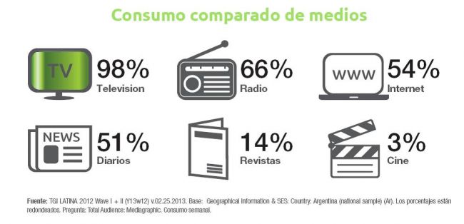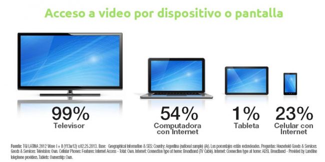 ¿Agonizan los medios tradicionales? Not yet. Cambia el mix de medios. Según la Latin America Multichannel Advertising Council (LAMAC) (*5) la televisión es el medio de mayor consumo en nuestro país, tanto en cantidad de personas como en tiempo de consumo. Sin embargo el 95,5% de los internautas Argentinos acceden a videos online. Por eso Netflix, Apple TV, Telefónica, Personal, Claro, DirecTV o Cablevisión nos siguen cambiando la forma de entretenernos. Broadcasting, live-streaming, On-Demand, HD, 3-D, TV interactiva. Podemos mirar “televisión” desde múltiples plataformas. Donde cuando y como lo queramos.