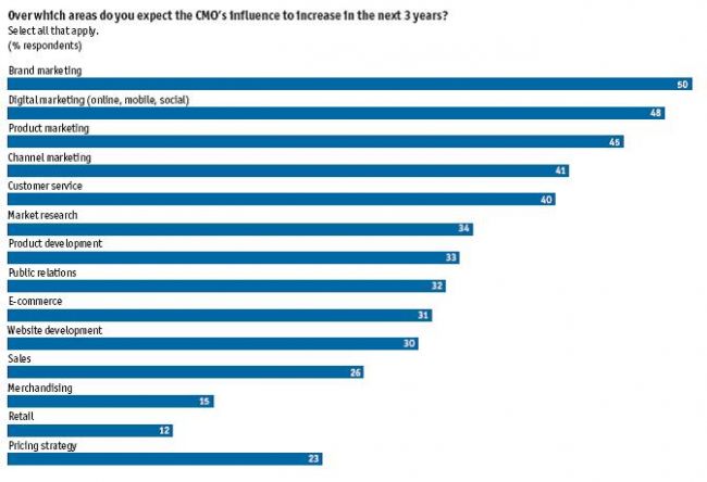 - contribución entre funciones cruzadas: ¿quién se beneficia realmente con los programas de marketing? Para los colegas del marketing, la comercialización es la entrega de valor en el desarrollo de productos, servicio al cliente y las ventas. Para el resto de la alta dirección el ranking se invierte, con las ventas consideradas como el principal beneficiario de las iniciativas de marketing.
