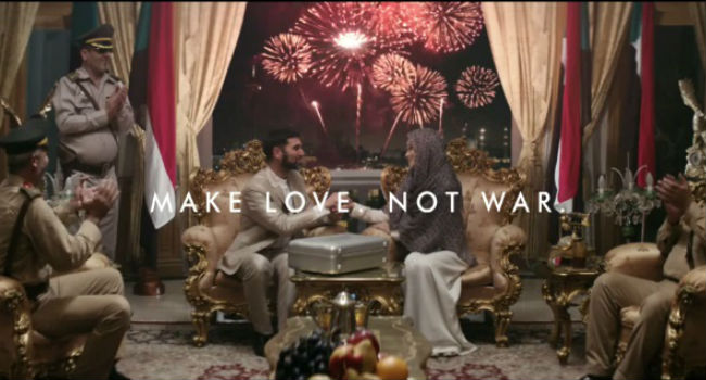 El mensaje es claro y directo: “Make love. Not war” (Haz el amor, no la guerra), y se dirige directamente a promocionar el nuevo Axe Peace.