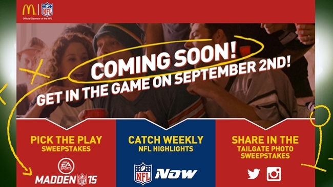 Además, McDonald’s realizará junto con el videojuego EA Sports Madden NFL 15 un juego interactivo para adivinar los resultados de los partidos. El vencedor se ganará un viaje al SuperBowl XLIX y muchos premios más.