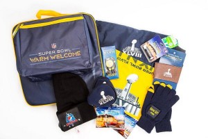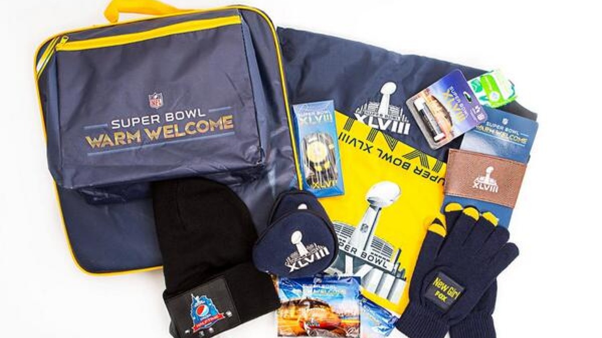 Un par de guantes, un gorro térmico y otros elementos forman parte del bolso que les será entrega a los simpatizantes de los Denver Broncos y los Seattle Seahawks.