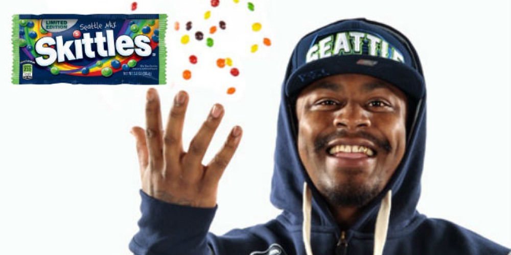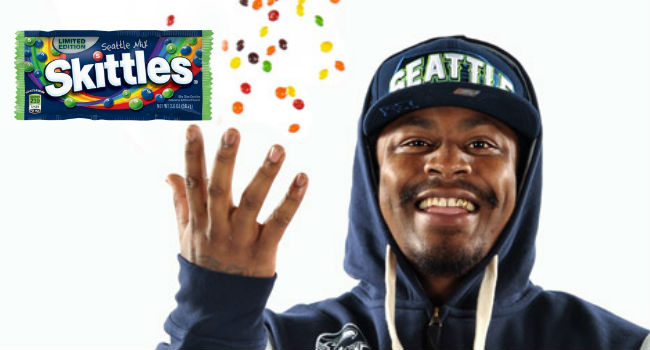 Con motivo de la firma del acuerdo con Marshawn Lynch, uno de los corredores estrella de la NFL, y figura de los Seahawks, Skittles lanzó una edición especial con pastillas de color verdes y azules.