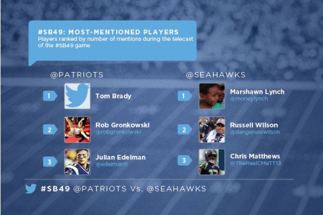 Récord absoluto el del Super Bowl XLIX en lo que refiere a las redes sociales. El partido donde los New England Patriots vencieron 28 a 24 a los Seattle Seahawks generó 28.4 millones de tuits en todo el mundo, superando ampliamente los 24.9 millones de 2014.
