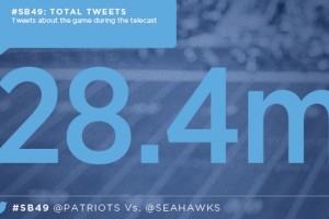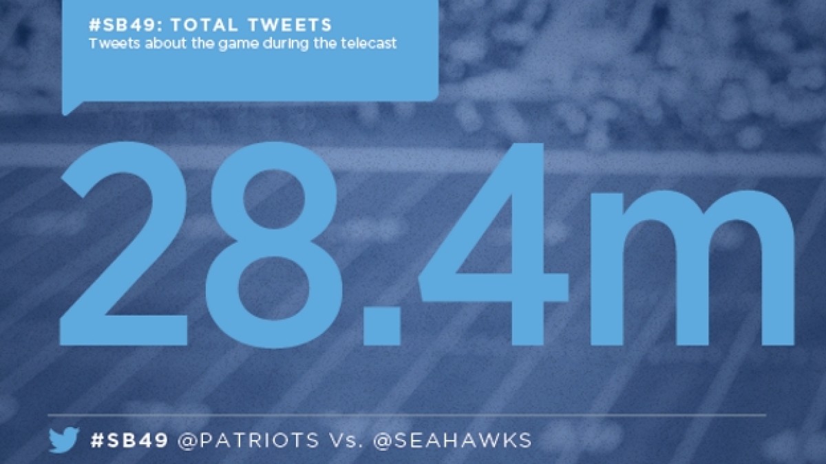 Récord absoluto el del Super Bowl XLIX en lo que refiere a las redes sociales. El partido donde los New England Patriots vencieron 28 a 24 a los Seattle Seahawks generó 28.4 millones de tuits en todo el mundo, superando ampliamente los 24.9 millones de 2014.