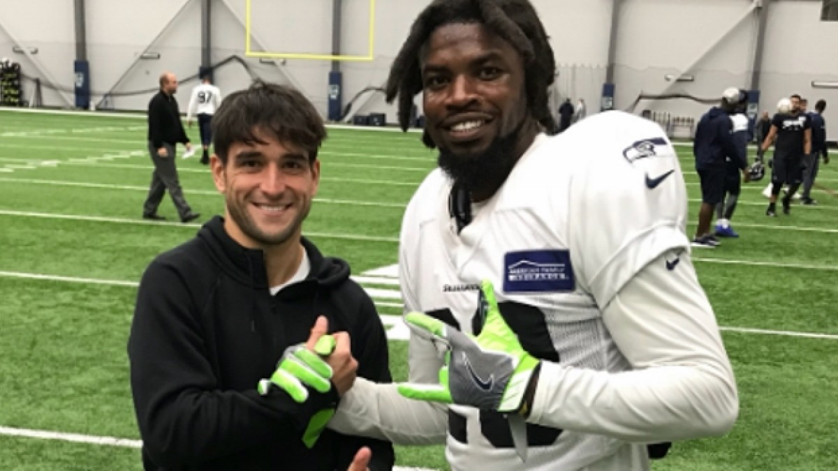 Lodeiro visitó a los Seahawks y se animó a practicar un par de pases de fútbol americano