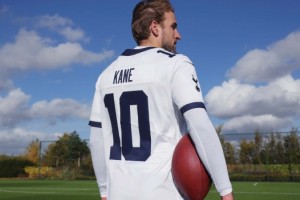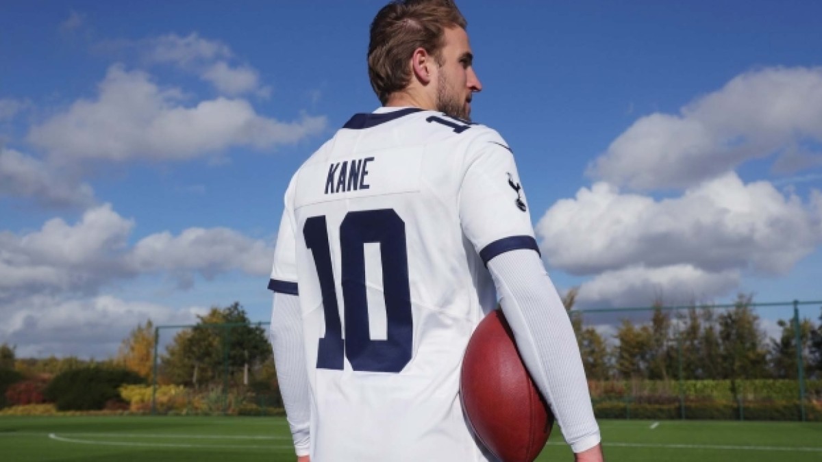 Además, el delantero de los Spurs y Selección inglesa, participó de las campañas y posó con las nuevas camisetas y una pelota de fútbol americano en sus manos.