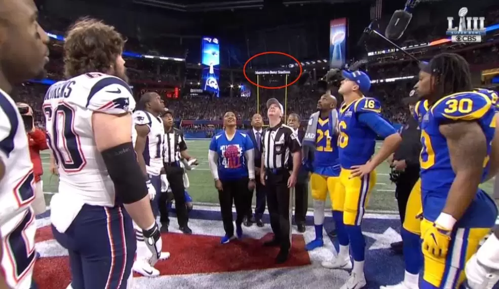 En esta última edición, la empresa automotriz Mercedes-Benz ha sido, sin lugar a duda, una de las más beneficiadas sin haber pautado oficialmente. El Super Bowl se disputó en el estadio de Atlanta que lleva el nombre de la marca alemana. Es por eso que la impresión del nombre en los tickets y la visibilidad del logo de la marca y el nombre, en algunos paneos de la televisión oficial le dieron a Mercedes-Benz una notoriedad muy particular.