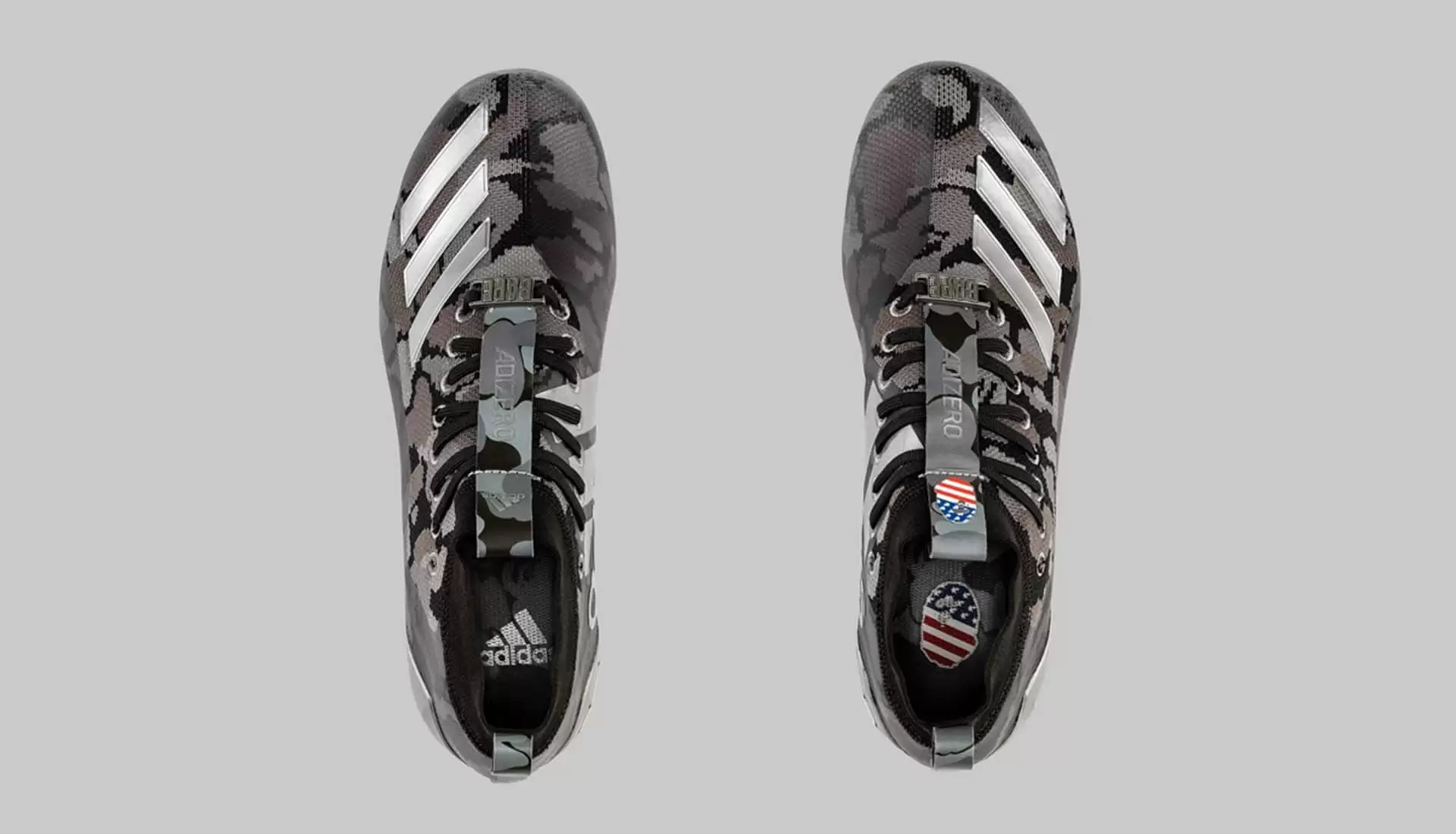 BAPE, marca de ropa fundada por Nigo en Ura-Harajuku en1993, tiene entre algunos de sus trabajos más importantes el tomar algunos artículos deportivos y darle una vuelta de tuerca. Con la llegada del Super Bowl han surgido los adidas x BAPE Adizero 8.0, que salen a la luz como parte de una cápsula de edición limitada.
