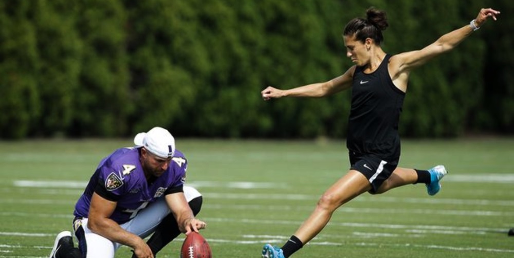 Luego de subir un video convirtiendo desde 55 yards con el equipo de Baltimore, New York Jets y Ravens no dudaron en llamarla