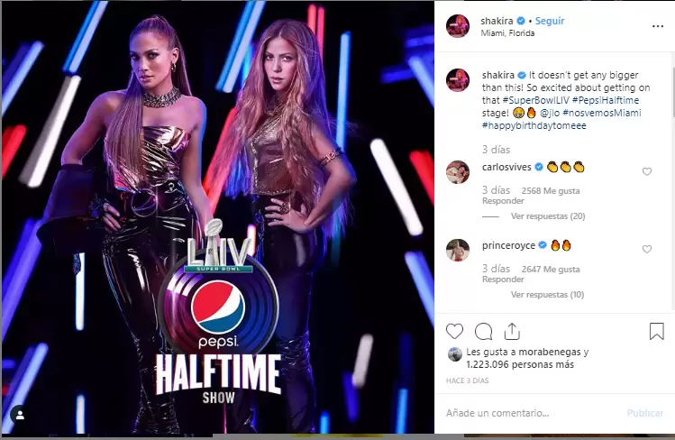 La gran final de la Liga de Fútbol de Estados Unidos de 2020, más conocida como Super Bowl, tendrá a Jennifer López y Shakira como artistas del entre tiempo. El partido está pautado para el 2 de febrero de 2020 en el Hard Rock Stadium en Miami Gardens, Florida.