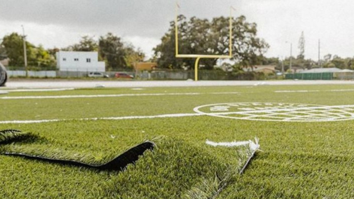 Adidas creó una cancha de fútbol americano con 1,8 millones botellas de plástico provenientes de islas remotas, playas, comunidades costeras y costas, con el objetivo de evitar que contamine el océano.