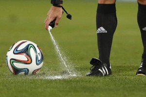 El aerosol es fabricado por una empresa argentina llamada 9.15 Fair Play Limit y hace varias temporadas se usa en la Primera División de Argentina y en los diferentes torneos de la CONMEBOL."Los equipos, los jugadores, los árbitros, las delegaciones, están contentos con su utilización. Uno de los representantes del Bayern me dijo el otro día que ahora los tiros libres se pueden lanzar a 9 metros de la barrera y no a 6 o 5 metros como en ocasiones y lo vamos a utilizar en el Mundial de Brasil" declaró el suizo. Y agregó: "Hay que continuar por este mismo camino. Es una buena solución. Yo era un poco escéptico sobre su utilización. Los árbitros que han sido preseleccionados para el Mundial están contentos con el aerosol".