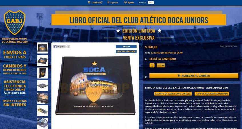 “Boca, la mitad más uno” en versión papel es de tapa dura, con un tamaño de 27,5 por 27,5 cm, 200 páginas de extensión y más de 300 fotos en su interior. Además, esta edición tiene un detalle innovador. Descargando la aplicación Boca AR para smartphones los fanáticos podrán acceder a dos efectos en realidad aumentada. Su costo es de $360 y se puede adquirir en el Museo de la Pasión Boquense, en el hotel Boca, en las peñas y también a través de https://www.bocashop.com.ar.