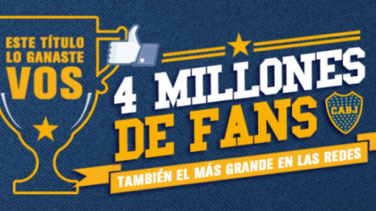 En diciembre de 2012, Boca Juniors recuperó el manejo de su web y redes sociales y, desde ese momento, creció y se consolidó en el mundo online. La página oficial de Facebook (www.facebook.com/BocaJuniors) superó los 4.000.000 de fans. Con ese número, Boca Juniors tiene la Fan Page con más seguidores de la Argentina y, a nivel mundial de clubes, ocupa el 15º puesto en el ranking que lidera el Barcelona.