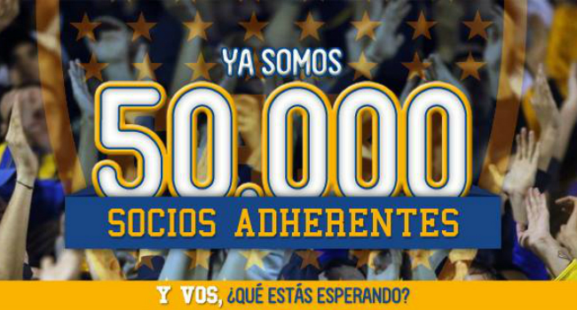 La campaña de socios adherentes que lanzó el club de la Ribera no se detiene y ahora marcó un nuevo récord. Boca Juniors superó los 50.000 adherentes gracias a los más de 3.000 hinchas que se asociaron desde el lanzamiento de la campaña 2013 realizado hace menos de un mes.