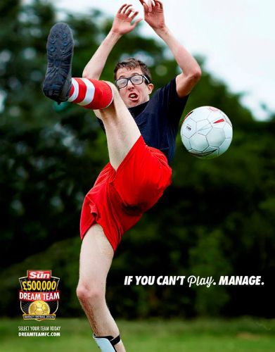 El juego basado en la Premier League, utiliza el claim “If yo can´t play. Manage.”, ilustrando con imágenes que claramente muestran a personas muy poco habilidosas con el deporte, pero que por ello, son invitadas a manejar sus equipos en el el Dream Team FC.